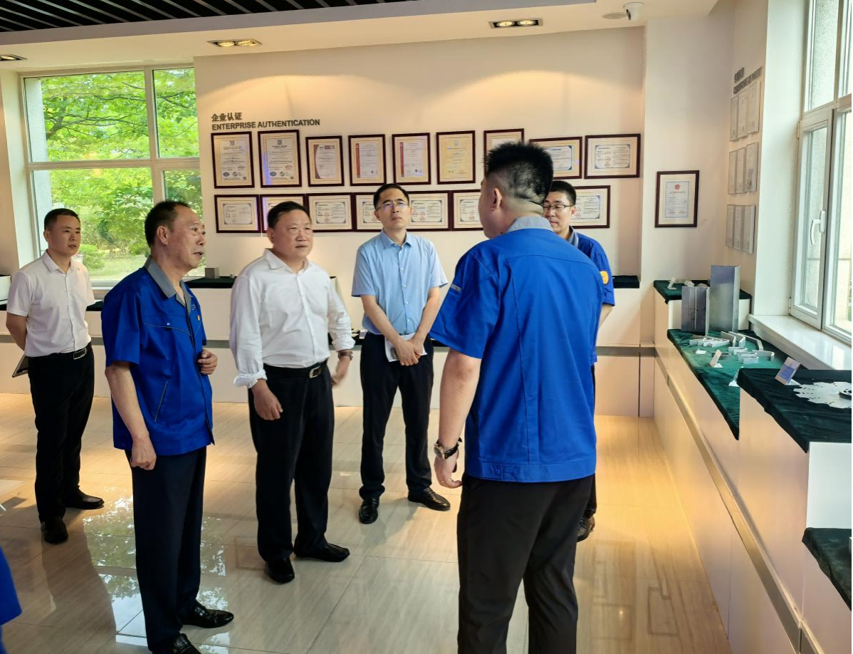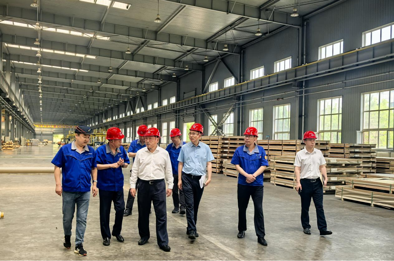 丛军主席一行首先参观了生产航空级铝合金预拉伸板的关键设备以及先进制造领域所需的新产品,随后在公司展厅调研了预拉伸板应用领域的终端产品,以及所获得的国际权威资质认证、发明专利、荣誉等成果。参观过程中详细了解了公司生产经营、市场开拓及产品研发等情况。